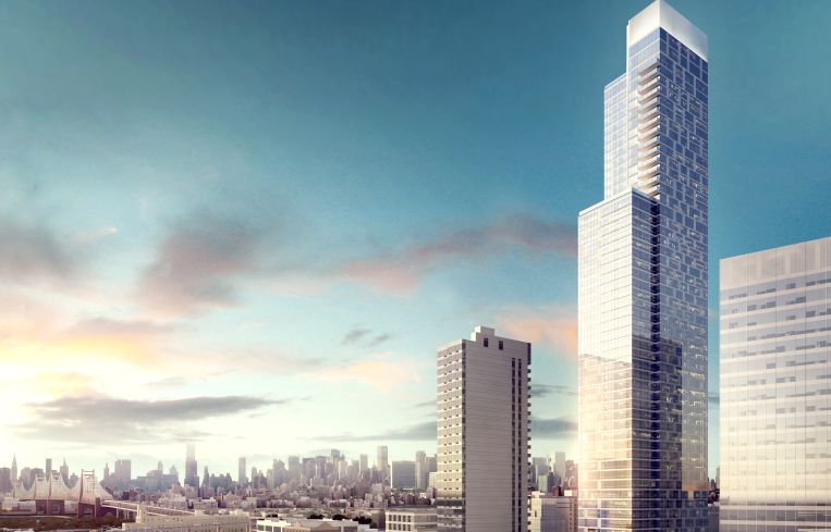 That building, United Construction & Development’s Court Square City View Tower, as it’s currently known should stretch 66 stories and 984 feet high. It will be the tallest structure in Queens. The building, at 23-15 44th Drive, will feature roughly 800 condominium units. It is being designed by Hill West Architects and will feature a double-height lounge with a mezzanine area overlooking a pool on the third floor. The tower will also have two shades of glass—a neutral blue on its broader sides and a clear green
