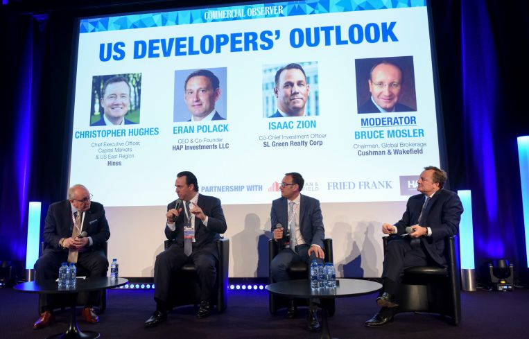 Bruce Mosler, the chairman of global brokerage at Cushman & Wakefield, moderated the first panel about developers’ thoughts on the market, which included Hines CEO of Capital Markets and the East Region Christopher Hughes; SL Green Realty Corp. co-Chief Investment Officer Isaac Zion; and Eran Polack, CEO and co-founder of HAP Investments.