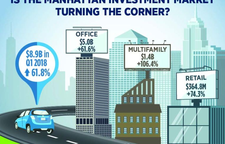 The office sector accounted for 56 percent of Manhattan’s dollar volume with $5 billion traded and was up 61.6 percent from the 2017 quarterly average. This was bolstered by Google’s purchase of Chelsea Market for nearly $2.4 billion, which accounted for 48.2 percent of the office investment dollar volume. But it was not just the office sector that recorded upticks in dollar volume, as multifamily investment sales more than doubled the 2017 quarterly average of $656.4 million with more than $1.4 billion traded. Even retail investments had a strong first quarter, 23 transactions completed, marking the highest total since the first quarter of 2015 and nearly double the quarterly average of 12 sales over the past two years. Total dollar volume for retail was up 74.3 percent compared to the quarterly average in 2017 with $364.8 million traded.
