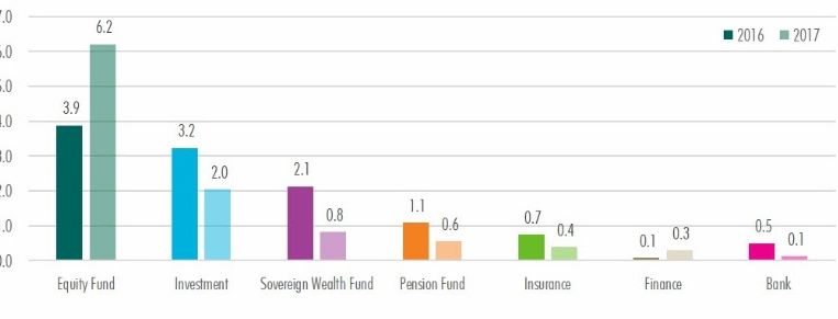 Equity funds dominated market share in L.A. in 2017, accounting for roughly two-thirds (66.4 percent) of all commercial real estate acquisitions compared with only 27.6 percent in the previous year, CBRE said. In turn, capital outlays from investment managers, sovereign wealth funds, pension funds, insurance companies and banks all declined year-on-year in 2017.