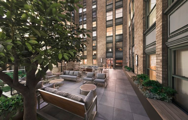 Beyond providing state-of-the-art office space, which commercial tenants have come to expect, RXR also provides a full range of amenities for their tenants to enjoy and build community around. The Helmsley Building’s Club Room is a prime example. This tenant amenity lounge resembles a classic university dining club and houses space for conferences, meetings, and employee socials. The landscaped terrace and fireplace lounge add RXR’s personal touch.
