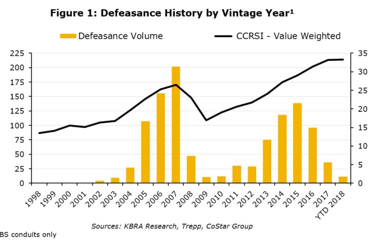 “The increase in property prices may still make defeasance attractive,” Kay wrote. “Fairly strong appreciation has accrued for five of the remaining seven [CMBS] vintages with defeasance-eligible collateral. Based on property appreciation…a number of borrowers may choose to defease.”