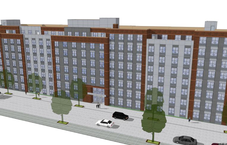 The eight-story building will include studios as well as one-, two- and three-bedrooms for tenants who earn between 27 and 100 percent of the Area Median Income, along with 24 units set aside for formerly homeless families.