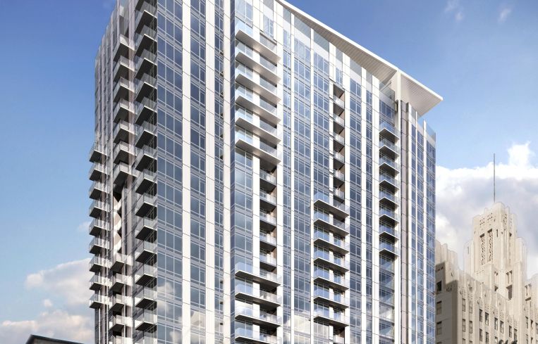 The Park Fifth high-rise will consist of 347 apartment units and 5,300 square feet of retail space. It is located across from Pershing Square, one of the largest public spaces in Downtown L.A.; the historic Millennium Biltmore Hotel; and a subway portal to the Pershing Square Metro Station. It is being developed by MacFarlane directly adjacent to a seven-story mid-rise rental apartment that the firm is also building. Both properties are expected to be completed during the first half of 2019.