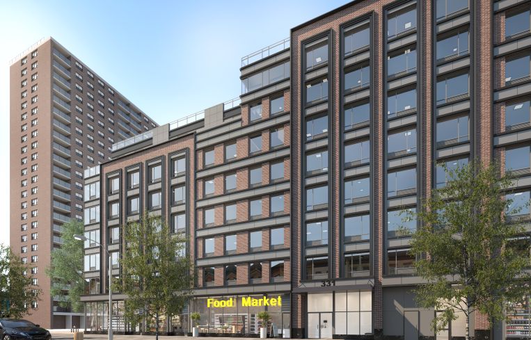 Under the Affordable New York tax incentive program, a portion of the eight-story building 116 apartments will be set aside for residents who earn little compared with New York City’s median income. Amenities for renters will include a rooftop deck and a gym. Starbucks and Key Food, a supermarket, have pre-leased the project’s 16,943 square feet of ground-floor retail space.