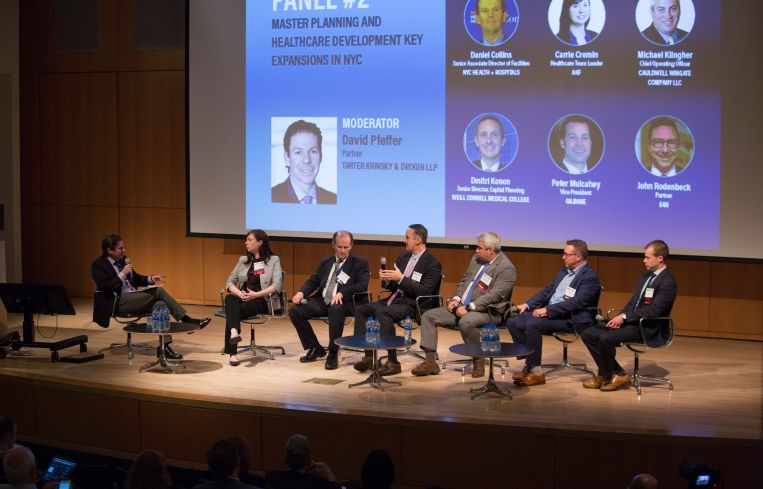 Modular construction is often the way to go for hospitals looking to streamline projects and cut construction costs. Carrie Cremin, a health care team leader at AKF, mentioned that her firm was working on a modular, mechanical penthouse on top of a medical office building. She spoke during the second panel of the day, which included Rhodenbeck, Peter Mulcahey of Gilbane, Dmitri Konon of Weill Cornell Medical College, Michael Klingher of Cauldwell Wingate Company, Daniel Collins of NYC Health + Hospitals and moderator David Pfeffer of Tarter Krinsky Drogin.