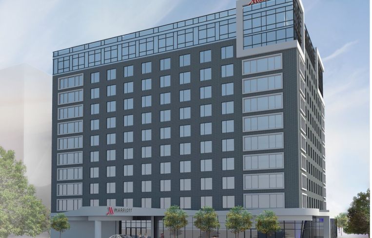 When completed, two separate hotels totaling 542 rooms will sit atop what is currently a parking lot; a 11-story, 360-key Marriott and a 12-story, 182-key Residence Inn. Both hotels will include meeting spaces, lobby lounges and fitness centers.