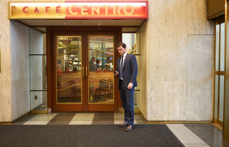 Finan begins the day at Cafe Centro, just downstairs from CBRE’s headquarters in the MetLife Building at 200 Park Avenue. He’s joined for breakfast chat today by analyst Conor Haughey of Toronto-based Oxford Properties, whose holdings include prime office buildings in Boston, Washington, D.C., and New York City—most notably at Hudson Yards. After they finish catching up on business over granola and Greek yogurt, conversation turns to Haughey’s recent trip to Toronto, Canadian businessmen’s fondness for hockey metaphors and the traffic chaos that has consumed Midtown during the U.N. General Assembly. “I just value that kind of personal connection, talking about things outside of business in a more casual environment,” Finan said.