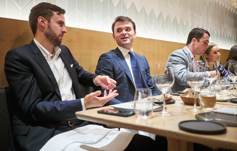 After a few hours of work at his desk, Finan and his junior colleague on the CBRE debt team, PJ Finley, head downstairs for a meal. For lunch it’s Agern, a Michelin-starred restaurant in Grand Central Terminal that serves cuisine cooked up by Icelandic chef Gunnar Gíslason. They’re joined by a group of colleagues from CBRE’s capital markets and investment sales groups. “We care about all their deals,” Finan said. “Whatever stage they’re in, we’re constantly providing our feedback in terms of the financing. They’re super fun people, and it’s been a good relationship to foster over the last two years.” (What’s more, Finan is still talking about Agern’s fresh-baked bread at dinnertime six hours later.)