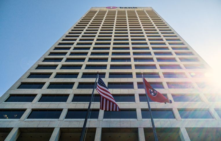 Pinnacle Airlines—a regional carrier that has since been bought by Delta Air Lines—took over 155,000 square feet of the tower, Memphis’ fourth tallest, in 2011, but moved out again in 2013. Today, tenants include B. Riley Wealth Management, Independent Bank and the Tennessee Department of Children’s Services.