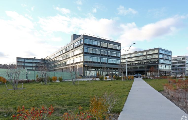 The two buildings—one four stories and one five stories—are on a nearly four-acre site and together total roughly 450,000 square feet. The development features 35,000 square feet of retail space with views of the waterfront.