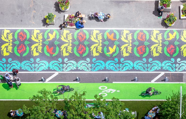 The Garment District has utilized horticulture and public art to activate the heavily traversed corridor that connects Times Square and 34th Street. For example, over the last year, the BID brought in Montreal-based Creos to install public art that is illuminated at night, allowing for greater use during winter months.
