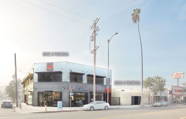 The two adjacent commercial buildings, at 5532 and 5526 North Figueroa Street, span a total of 9,101 square feet and are located at the corner of Roselawn Place.