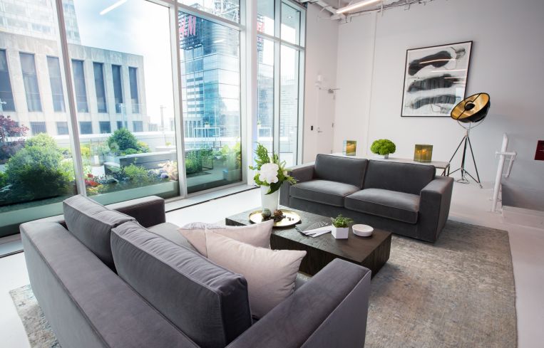 As part of the renovation, Durst built out a very white marketing center with mid-century modern, white couches and brown leather Eames chairs (which has hosted many real estate events as well as the TV show “Billions”).