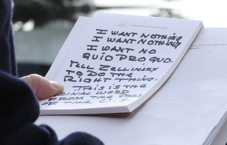 “I WANT NO QUID PRO QUO,” Trump had written, quoting himself in a phone call he’d made to Sondland months earlier. “THIS IS THE FINAL WORD FROM THE PRES. OF THE U.S.”