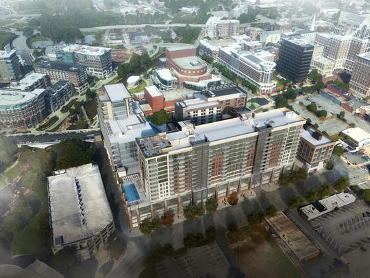 When finished, the project, at the intersection of South Main and Broad Streets, will comprise a 17-story office building with almost 34,000 square feet of retail, a 217-apartment multifamily building and an AC Marriott hotel with 217 rooms. Trez’s loan is attached only to the office building and to the retail portion of the residential building; the hotel has already been sold off to Auro Hotels, a Greenville-based company that will operate the lodging.