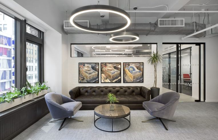 When construction firm CNY Group decided to move its offices to 1440 Broadway, the company gave its new space an industrial-inspired look with midcentury modern furniture—plus a few unusual touches.