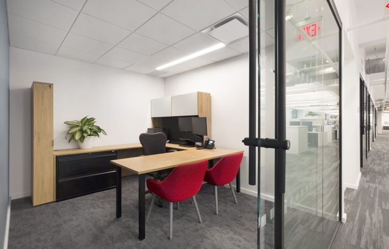And there are a number of glassed-in meeting rooms, ranging from a large training room to two- or three-person conference areas.
