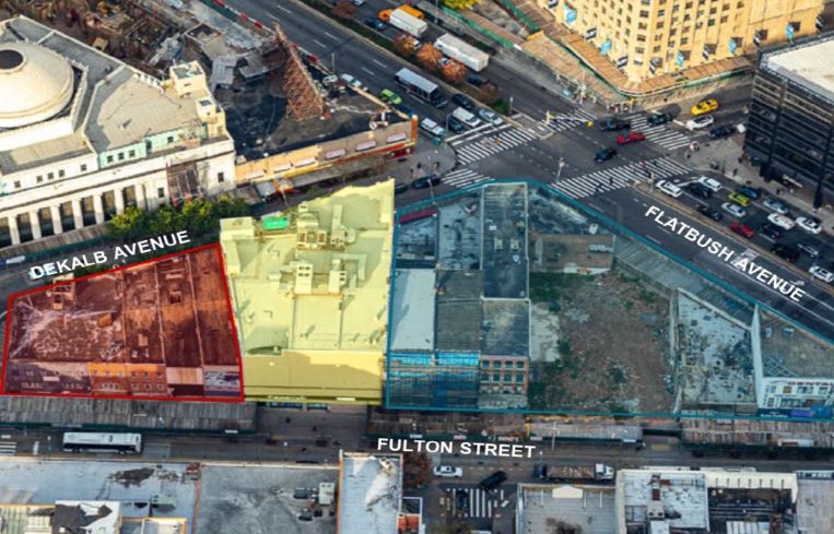 The 14-lot, 36,290-square-foot land assemblage, also known as the Fulton assemblage, comprises two sites that sit on both Fulton and Flatbush avenues at 547-557 Fulton Avenue and 559-589 Fulton Avenue. RedSky and JZ Capital acquired the first sites in November 2012, and over the next seven years made nine additional separate acquisitions to fully assemble the development sites.