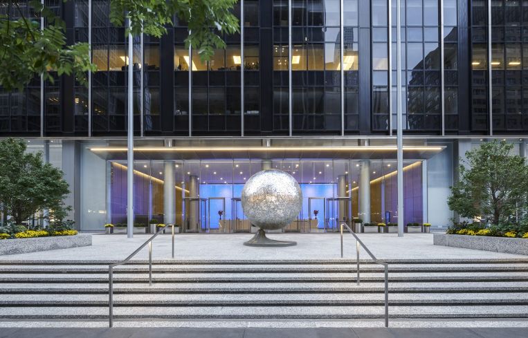 The landlord recently finished $120 million worth of renovations to the 50-story, 2 million-square-foot office tower that it started in 2017. The Emery Roth & Sons-designed skyscraper has the dark, imposing glass typical of late-1960s modernist office buildings, along with a large, sparsely planted, street-level plaza that featured a fountain and two starburst-shaped bronze sculptures.