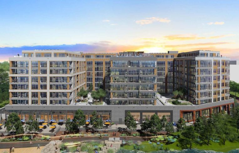 Developed by a joint venture between Western Development, Akridge and Orr Partners, RiverPoint when finished will consist of 58,800 square feet of restaurant and retail space and 480 apartments, per the prepared statement. It will also feature waterfront activities with new piers and the continuation of the 28-mile Anacostia Riverwalk Trail.