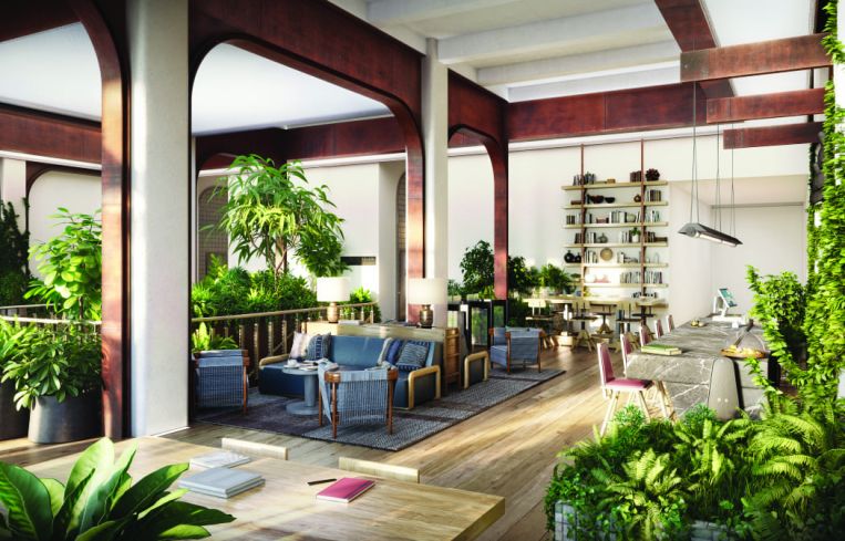 The revamp will also significantly expand the size of the lobby, from 1,000 to 6,000 square feet, and add lounge seating, a coffee bar, and plenty of plants and greenery. Elliott Ingerman, one of the founding partners of Tribeca Investment, said that he was aiming for a biophilic, nature-focused design that would include grow lights and feel like a hotel lobby. Ingerman, who developed the Moxy and Baccarat hotels in the Financial District, even tapped an interior designer that largely focuses on hotels, Studio MAI, for the project.