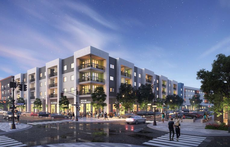 The mixed-use properties within the EastVillage master-planned site are being developed in two phases. The first will offer 312 luxury apartment units across six garden-style apartment buildings with resident amenities, including a fitness center, courtyard, dog-grooming station and swimming pool. The second phase will add 422 apartment units, 143,000 square feet of commercial space and additional amenities, including a game room and yoga studio.