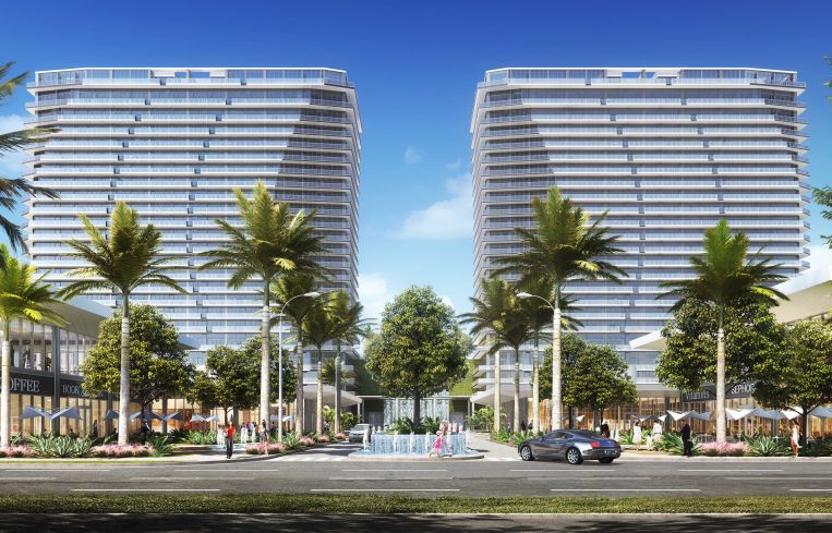 Designed by high-profile firm Arquitectonica, the 10.8-acre development will consist of 13,100 square feet of office space, 81,900 square feet of retail, and two 25-story residential towers totaling 500 units. The apartments’ asking prices are slated to range between $400,000 and $2.8 million.