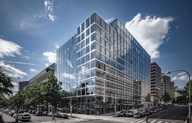 Completed in 2019, the 13-story building features an expansive two-story lobby; a large entertainment suite; and three outdoor terraces, including a 3,000-square-foot rooftop terrace offering extraordinary views over the Federal Triangle and National Mall.