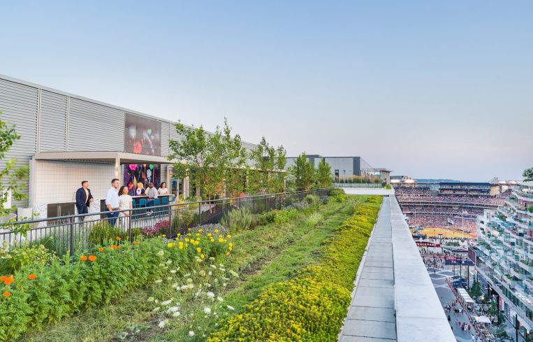 Then, there’s 55 M Street SE, a 267,695-square-foot, nine-story office building that Spear Street Capital owns and was delivered earlier this year. The building offers flexible rooftop space with movable high-end furniture and sweeping city views. It also features an abundance of greenery, and a farm managed and operated by Up Top Acres that grows vegetables for tenants and local restaurants.