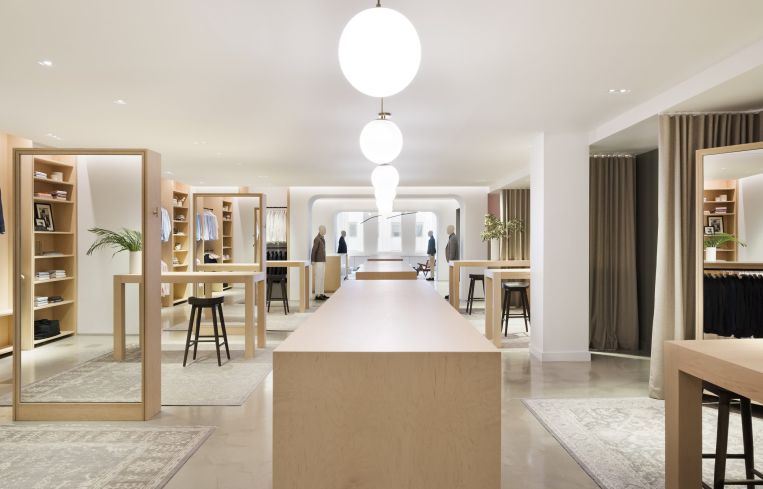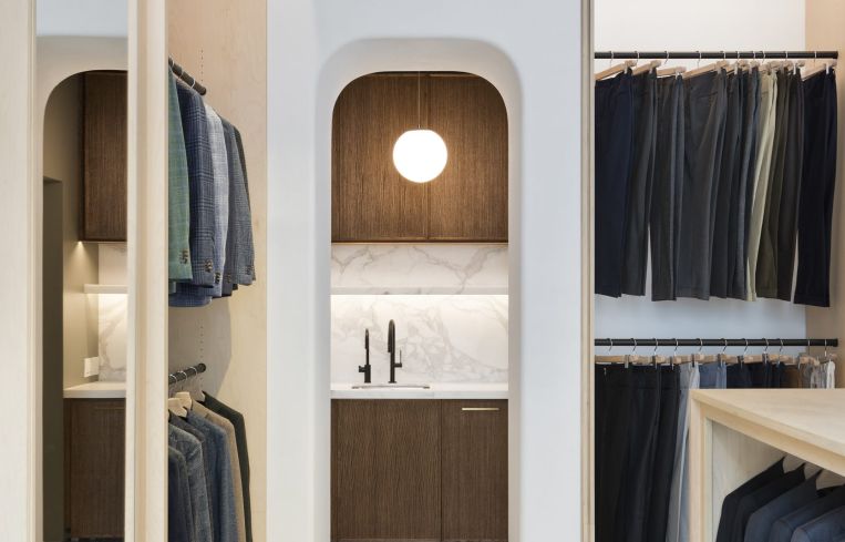 It hired architecture firm Fogarty Finger to design the space, which includes changing rooms, a lounge space, a small kitchen and coffee bar, and tailoring stations where customers can get their clothes altered. Construction was supposed to begin in March 2020 but was pushed to November, then completed in June of this year.