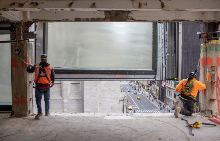 The building’s old aluminum facade was so porous that “you could feel the wind blowing through it,” said David Noyes, the director of construction for Brookfield. The new facade panels consist of 19-by-11-foot pieces of glass, which Brookfield claims are the biggest windows ever used on a skyscraper. The developer estimates the new facade will reduce the building’s carbon emissions by 50 to 60 percent, coupled with a new energy-efficient heating and cooling system known as a dedicated outdoor air system (DOAS). Work is well underway — interior demolition began in May 2020, and construction is expected to be substantially complete in October 2022.