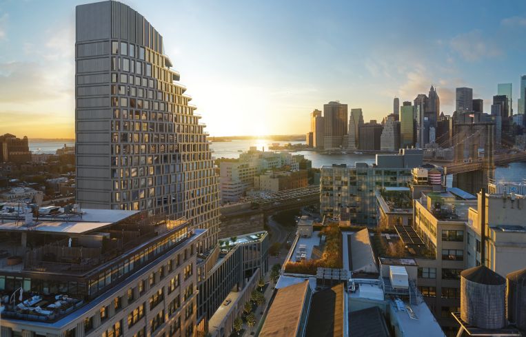 The striking, 33-story asset is designed by Hill West Architects and sits in the heart of Dumbo, offering views of the harbor and Lower Manhattan skyline. When completed, it will feature more than 38,000 square feet of top-tier indoor and outdoor amenities, including a sauna and spa, a yoga room, indoor and outdoor swimming pools, tennis courts, and billiards and bowling lounges.