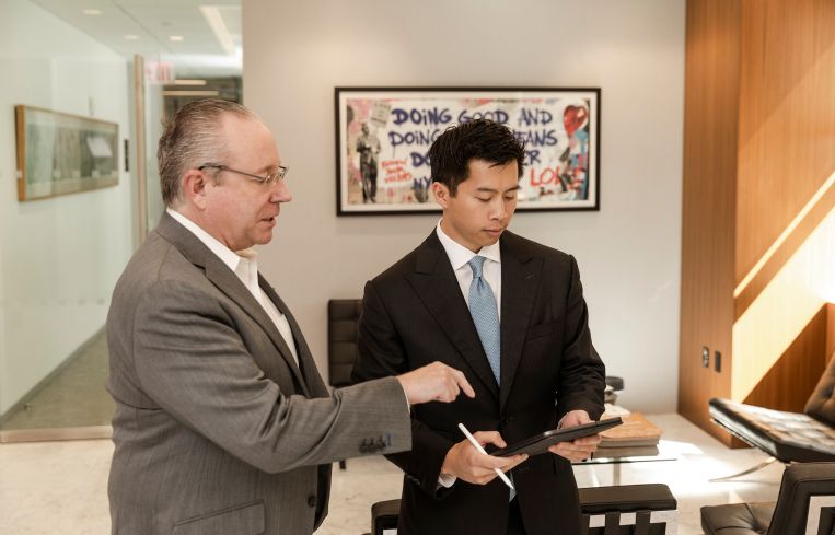 Lee grabs time with Rechler to discuss some ideas he has for a deal he’s currently working on. Lee and Rechler then head to the firm’s daily senior team check-in, along with Mike Maturo, president, and Jason Barnett, vice chairman and general counsel. Rechler’s reputation in the industry was one of the reasons Lee joined RXR. “I’ve been very fortunate to have the opportunity of working closely with Scott, who has been an inspiring mentor for the past seven years,” Lee said. “Not only is he one of the most successful and well-respected leaders in the industry, but he is also an incredible civic leader dedicated to improving the broader community.”