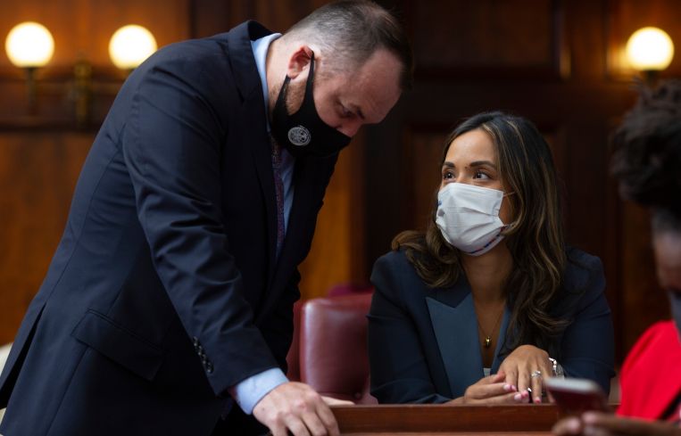 Carlos Menchaca and Ben Kallos, two council members who railed against the passage of a rezoning last month for the New York Blood Center‘s expansion, stood together in their opposition to the passage of the Lower Manhattan rezoning.