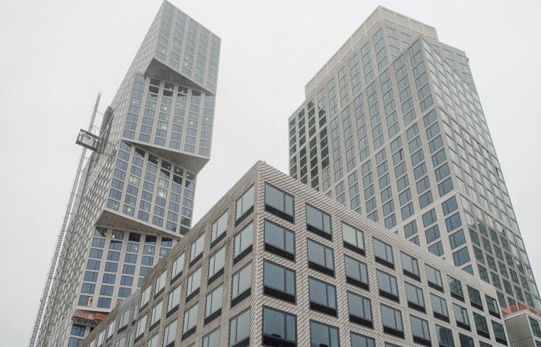Brookfield and Park Tower Group are also working on two stacked, angular towers at 227 West Street, which will rise 30 and 40 stories and include 745 rentals, 30 percent of which will be income-restricted. Rem Koolhaas’ OMA is the lead architect for the project between Eagle and West streets, along with Beyer Blinder Belle.