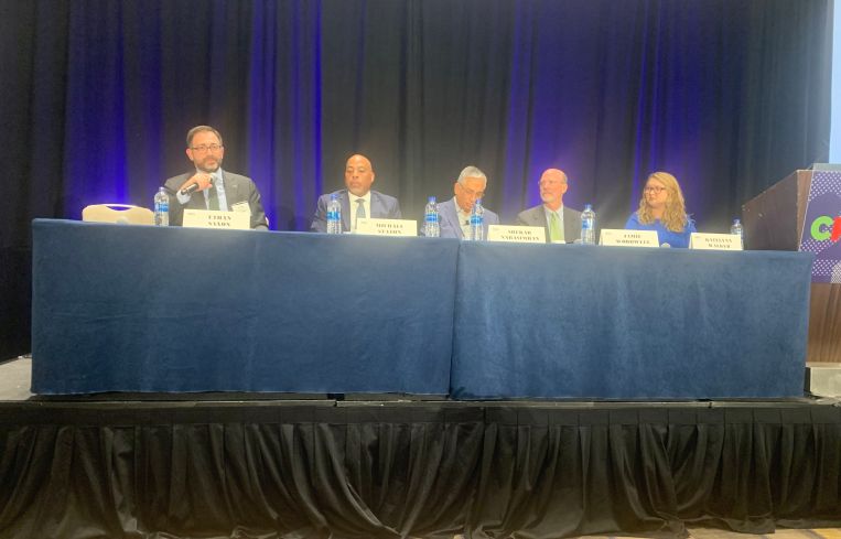 The panel also included Jamie Woodwell, vice president of the commercial and multifamily group, research and economics at MBA; Ethan Saxon, the MBA’s associate vice president of legislative affairs; and Shekar Narasimhan, managing partner of Beekman Advisors. Katelynn Harris Walker, associate director of affordable housing with MBA, moderated the discussion.