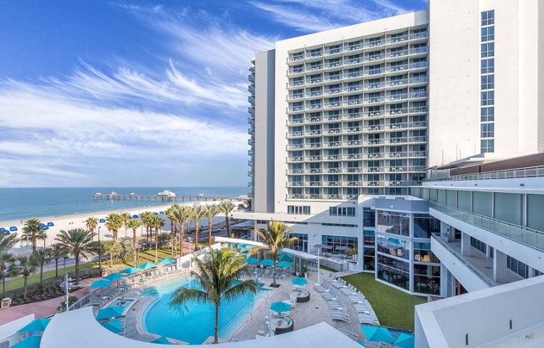 The 15-story Wyndham Grand Clearwater Beach features 17,000 square feet of meeting space, a bar and lounge, three restaurants, a fitness center, a spa, a sundries shop and 460 parking spaces.