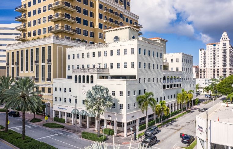 The Coral Gables building, 2000 Ponce, spans 46,320 square feet in the business district of the Miami suburb. The eight-story property houses 36,023 square feet for offices and 10,296 square feet for restaurants on the ground floor, which remains vacant, in addition to 104 parking spots.