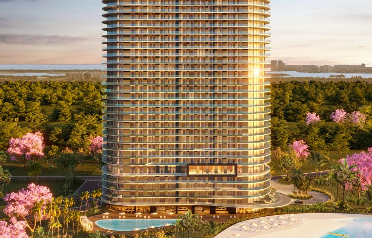 The 32-story condo development, ONE Park Tower by Turnberry at SoLé Mia, will feature 303 luxury apartments overlooking a 7-acre man-made lagoon.