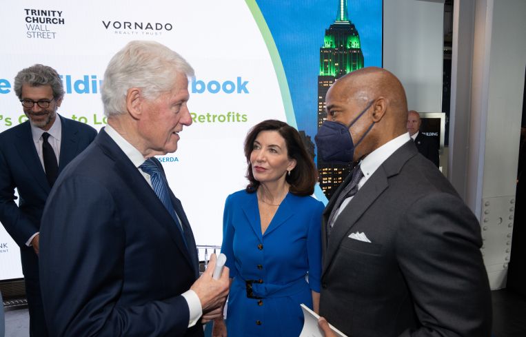 The announcement of “The Empire Building Playbook: An Owner’s Guide to Low Carbon Retrofits” attracted Gov. Kathy Hochul, Mayor Eric Adams and former President Bill Clinton who expressed high praise — and high hopes — for the potential of the how-to.