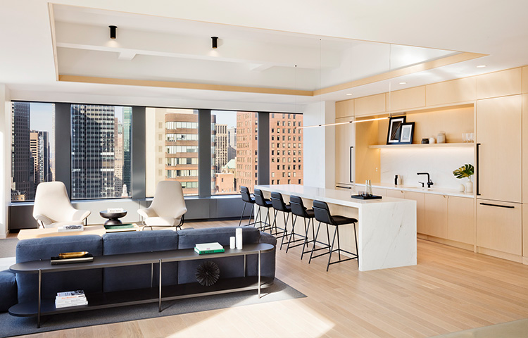 To attract prospective tenants, Rockhill unveiled a comprehensive pre-build program throughout its New York portfolio. At 412 West 15th Street, Rockhill hired Fogarty Finger Architects to create move-in ready, full-floor pre-builds showcasing the tower’s boutique floor plates, floor-to-ceiling glass and sweeping views of Midtown, Downtown and the Hudson River. These spaces were critical in attracting tenants to the building. Several new tenants, after touring the pre-builds, hired Fogarty Finger to customize their own build-outs in the newly delivered tower’s vacant floors. This January, Bakkt Holdings, a digital assets platform, executed a lease for the remaining office space, bringing the property to 100 percent leased (excluding retail).