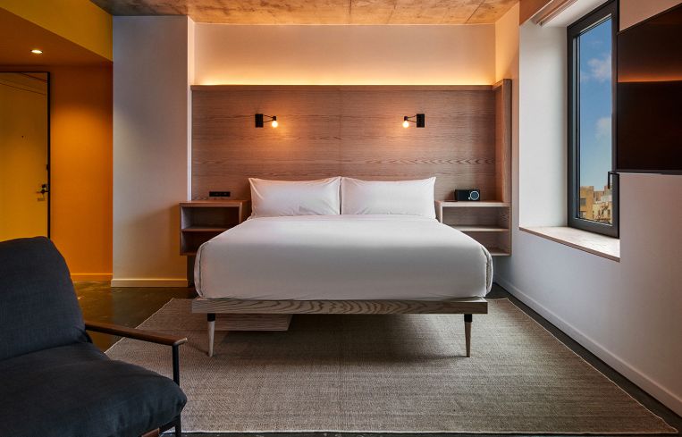 Besides the rooms, the property has a 10,000-square-foot event space on the 12th floor, a top-floor roof deck with sweeping views of Manhattan and the Bronx, and an 8,000-square-foot courtyard on the first floor that will offer extra seating for the restaurant and outdoor space for events.