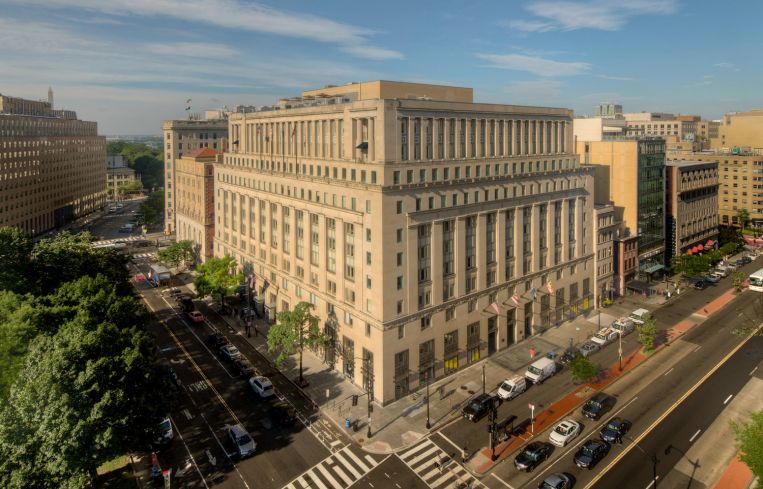 Constructed in 1928, the 11-story property overlooks McPherson Square near downtown Washington, D.C.’s central business district and is two blocks north of the White House. It achieved certifications from Leadership in Energy and Environmental Design and the International WELL Building Institute after the recent improvements, which aligns with Grosvenor’s commitment to achieve net zero operational carbon emissions by 2030.
