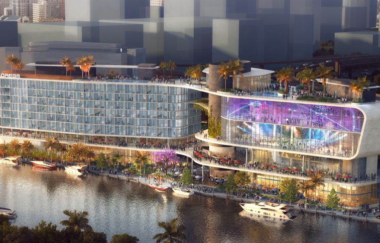 The entertainment destination — located at 114 SW North River Drive, just north of the Brickell district — will also be the home to a “private marina capable of accommodating megayachts,” according to a spokesperson for the joint venture.