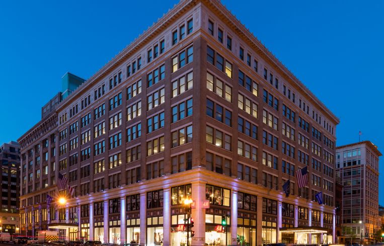 The property was built in the late 1800s, and housed the Woodward & Lothrop flagship department store until 1995. In 1999, Douglas Development acquired the building, rezoned the property, renovated the interior and restored the facades, according to an HGA statement