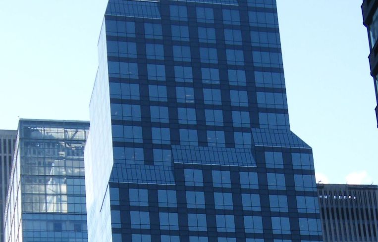 The Roche-Dinkeloo-designed building was constructed in 1990 and occupies an entire block front on Seventh Avenue between West 49th and West 50th streets, just north of Times Square. Over the past few years, landlord Fosterlane Management has renovated and modernized the elevator cabs and installed a new bike room. The property also has two amenity floors that offer conference facilities, a large training room, a cafe and a grab-and-go coffee counter.