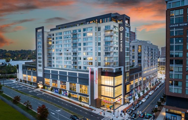 Developed by Stonebridge, Carlyle Crossing is anchored by Wegmans and features 200,000 square feet of retail and 741 residential units in three apartment buildings. The site was acquired from the Hoffman family in 2018, and construction began in 2019.