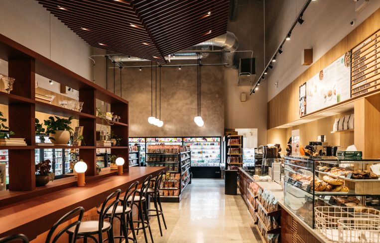 Foxtrot offers a full café, craft beers and wines selected by an in-house sommelier, and an array of local products from more than 50 local makers, per its count. The Farragut Square space was designed by an in-house team at Foxtrot in partnership with Nahra as interior designer.