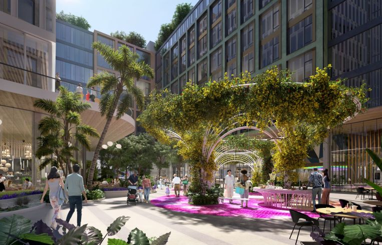 The development, designed by Gensler, will include a 12-story office building totaling 266,000 square feet, 509 luxury rental apartments and 32,000 square feet of retail, plus a 26,000-square-foot public plaza — hence the name. Construction began this week and is slated to end in 2025.